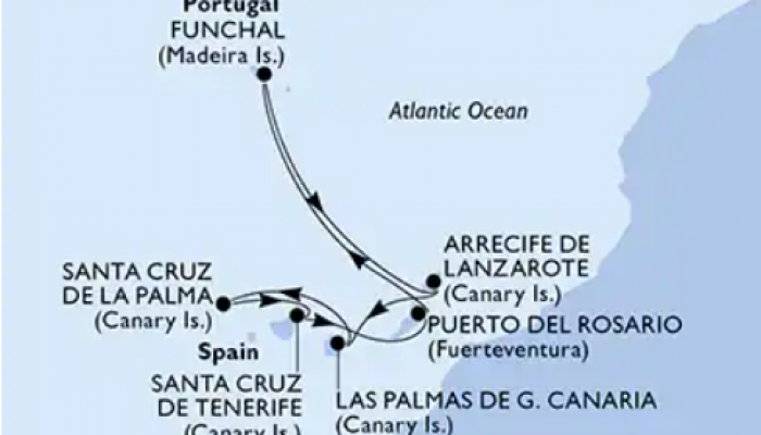 SANTA CRUZ – Tenerife Po zajtrku ogled mesta in vkrcanje na ladjo MSC Fantazija. Razširjeni polni penzion na ladji. |